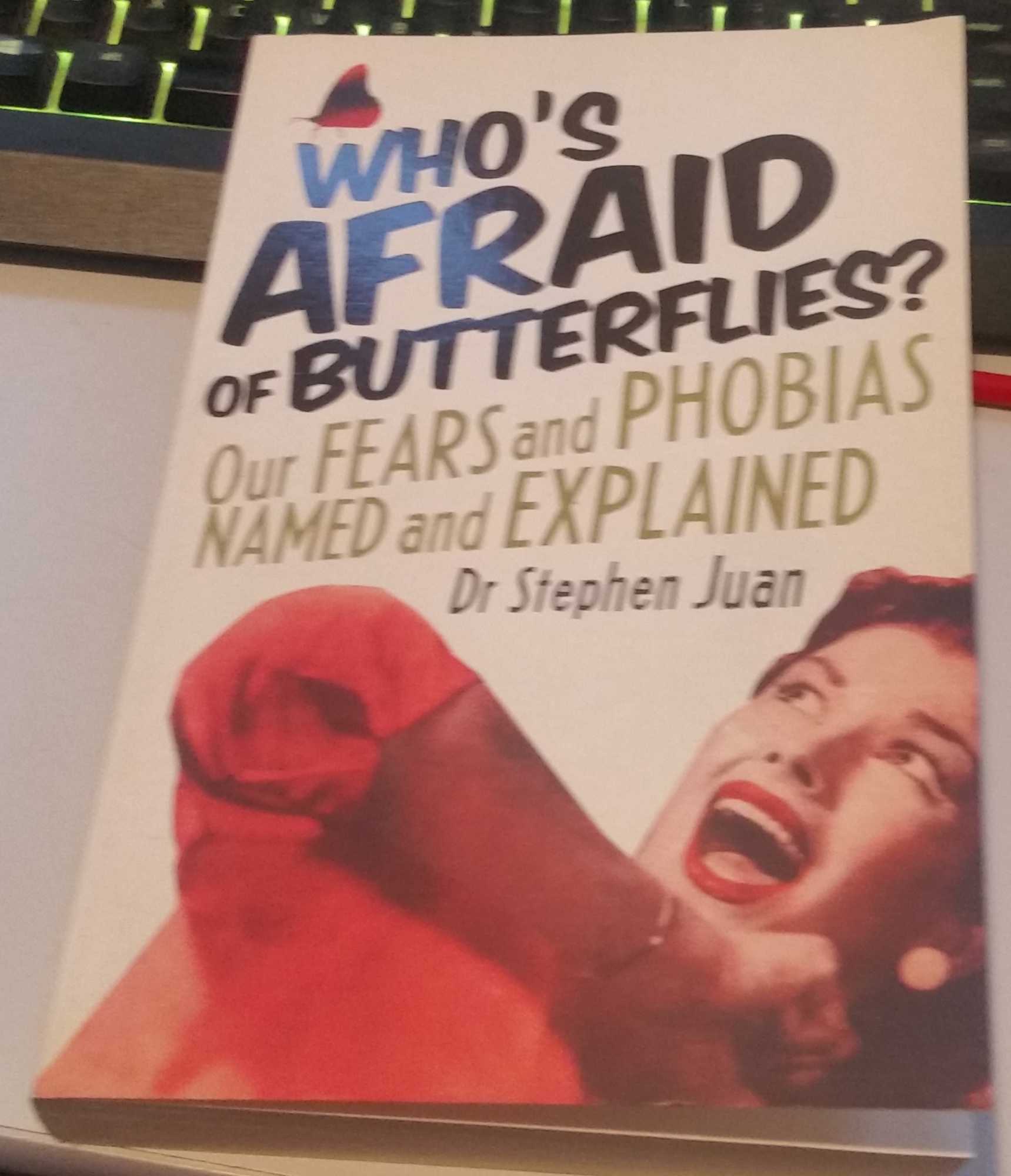 Do you know someone who freaks out at the sight of a puppet (Pupaphobia)? Can't handle being bathed in moonlight (Lunaphobia)? Or is petrified of twins (Biniphobia)? For everything that exists, there is someone somewhere who is deathly afraid of it. In Who's Afraid of Butterflies? Stephen Juan explores the fascinating world of our deepest fears from A (Abandonment) right through to Z (Zombies). Dr Juan explains how our phobias begin, why they endure, and the latest ways to overcome them - he even takes a look at the phobias of the famous (just who is afraid of butterflies?). So if you have ever been curious about phobias, or just too scared to investigate, then help is at hand - pick up this book and retreat to a safe place to figure it all out! All pictures shown are of the actual product offered for sale Trade Paperback. Size: 180mm - 250mm. 381 pages. Covers have some shelf-wear, as well as some bumping to corners and extremities. Quantity Available: 1. Shipped Weight: 1-2 kilos. Category: Psychology & Psychiatry; Australia; ISBN: 0732290511. ISBN/EAN: 9780732290511. Inventory No: 21226.