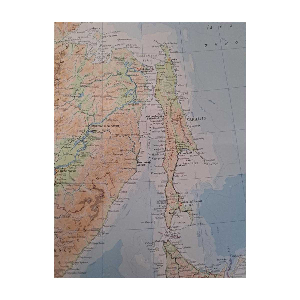 Single disbound map sheet from 'The Times Atlas of the World, Mid-Century Edition; Volume II Eurasia, suitable for framing. Map is in colour and has vertical centre fold. Approx. sheet size is 49 x 61cm. Sheet is clean, bright and crisp. Scale 1:5,000,000. Includes Kurilskiye Ostrova (Kuril Islands) and its volcanoes. Map shows relief, Oblast and Kray Boundaries, cities, town, rivers, main roads, railways, main civil airports and other airfields, active volcanoes. Key map on reverse and glossary of Russian Geographical Terms and Abbreviations of Principal Soviet Administrative Areas. First printing of this edition. Quantity Available: 1. Shipped Weight: under 1 kg. Pictures of this item not already displayed here available upon request. Inventory No: 45022081073. EU buyers are likely to be charged import VAT and handling charges by the courier/postal service before delivery. Please contact us before ordering to help minimise these charges. Sometimes total costs are less by ordering at abebooks and selecting to pay by paypal.