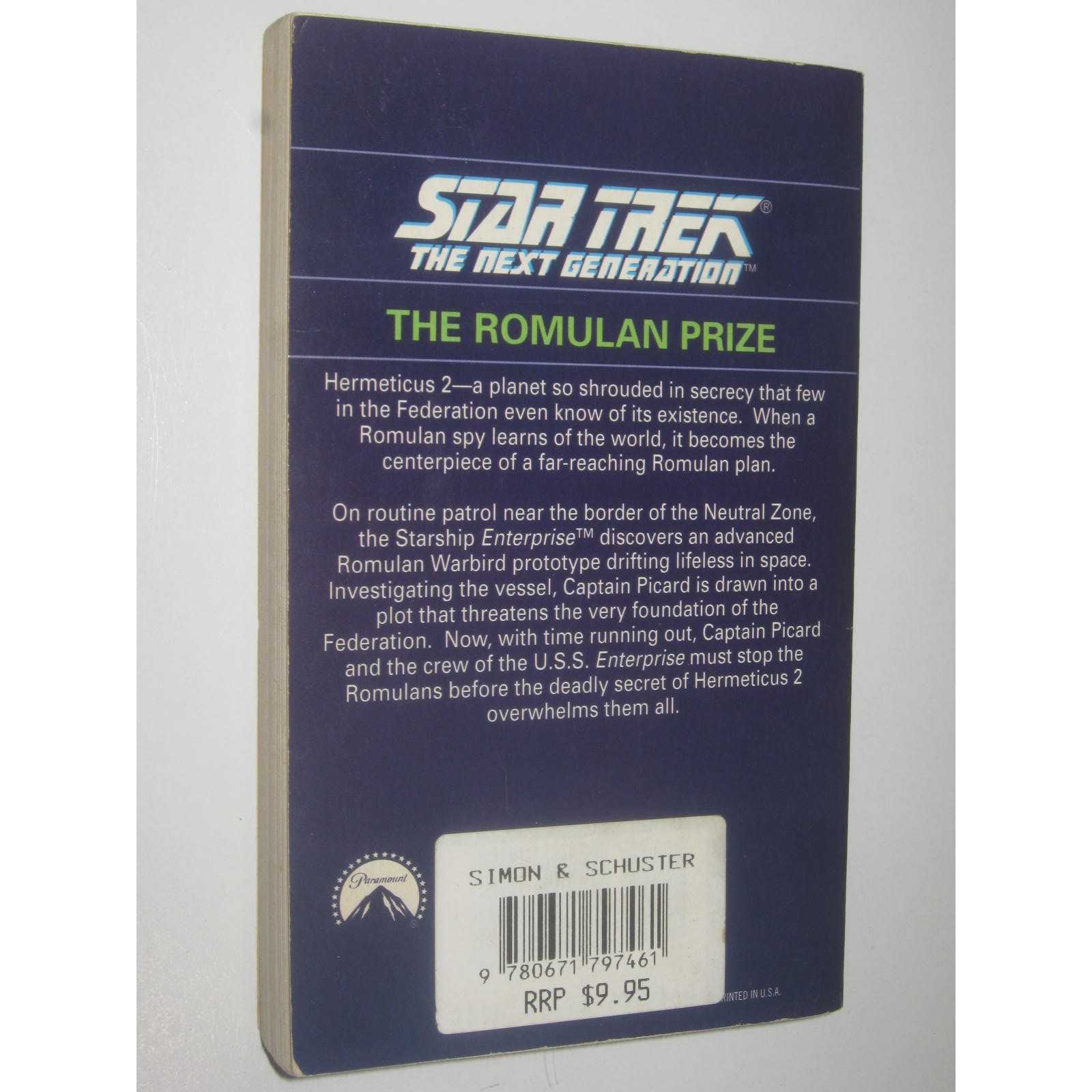 Paperback. 279 pages. *** PUBLISHING DETAILS: Simon and Schuster, USA, 1993. First Paperback Edition. *** CONDITION: This book is in very good condition. More specifically: Covers have no creasing. Edges of covers have superficial wear. Spine has minimal reading creases. . Edges of pages are lightly browned. *** ABOUT THIS BOOK: Hermeticus 2 is a planet so shrouded in secrecy that few in the Federation even know of its existence. When a Romulan spy learns of the world, it becomes the centerpiece of a far-reaching Romulan plan. On routine patrol near the border of the Neutral Zone, the "Starship Enterprise" TM discovers an advanced Romulan Warbird prototype drifting lifeless in space. Investigating the vessel, Captain Picard is drawn into a plot that threatens the very foundation of the Federation. Now, with time running out, Captain Picard and the crew of the "U.S.S. Enterprise" must stop the Romulans before the deadly secret of Hermeticus 2 overwhelms them all. *** Quantity Available: 1. Category: Fiction; Movie / TV Tie-in; Science Fiction & Fantasy. ISBN: 0671797468. ISBN/EAN: 9780671797461. Inventory No: 23120018. *** FREE tracked shipping for all orders within Australia ***