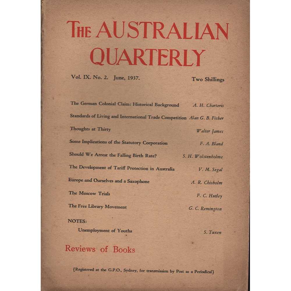 Australian Institute of Political Science, 1937, Softcover, Book Condition: Very Good, Dust Jacket Condition: No, First